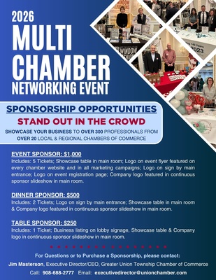 🌟 Spotlight your brand with a Showcase Table (only 30 available!). To purchase a sponsorship, please contact Jim Masterson, Greater Union Township Chamber of Commerce 908-688-2777